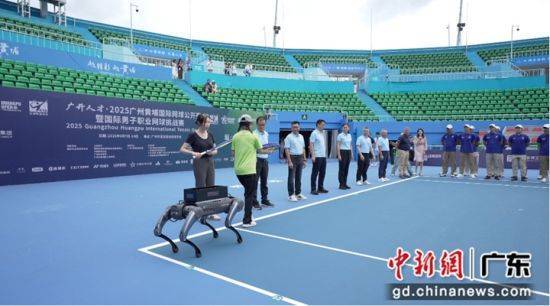 中新网广东新闻9月7日电 (记者 许青青)2025广州黄埔国际网球公开赛暨国际男子职业网球挑战赛9月7日至14日举行,这场比赛迎来了一位特殊的开球“球童”——工业级四足机器人MAXHUB X7。